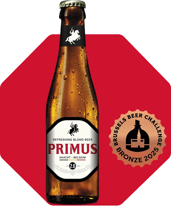 PRIMUS 2,6% werd bekroond met de Bronze Award op de Brussels Beer Challenge. Een mooie erkenning voor een lichtere pils die toch puur, verfrissend en vol Primus-karakter blijft. Je proeft nog steeds ons vakmanschap, onze hopblend en onze Belgische roots. En bovenal: dezelfde authentieke Primus-smaak, maar dan wat milder in alcohol. Geen compromis, geen verschil in karakter. Alleen lichter, even verfrissend en net zo lekker. Of het nu een internationale prijs is of een compliment aan de toog, elke waardering blijft voor ons even waardevol.